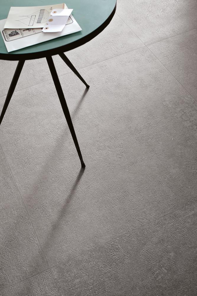 Le carrelage béton brut habille sols et murs avec un style industriel et contemporain.