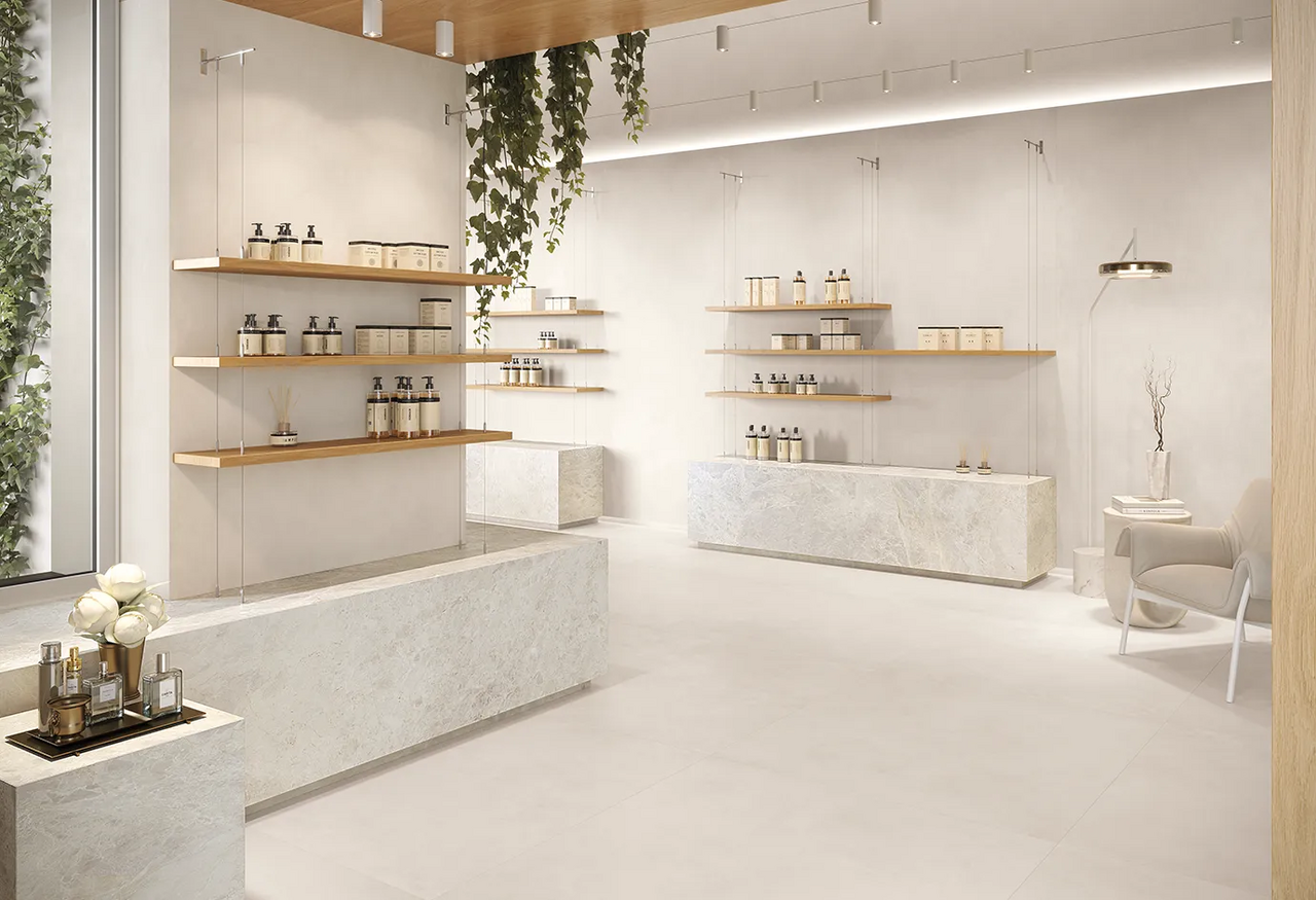 Le carrelage effet béton ciré offre un style moderne, épuré et industriel, idéal pour habiller vos sols ou murs avec élégance.