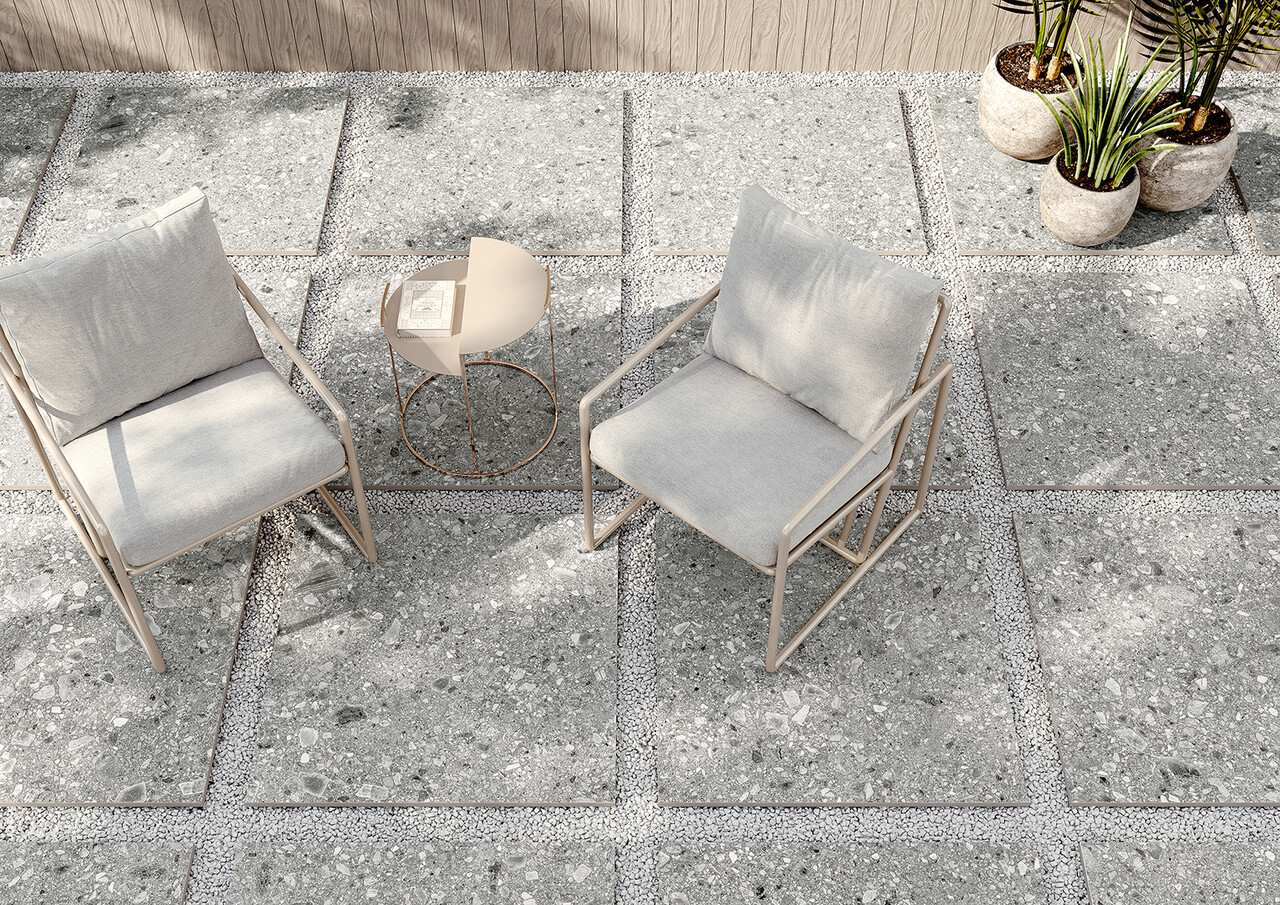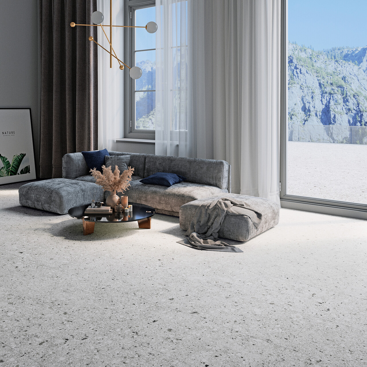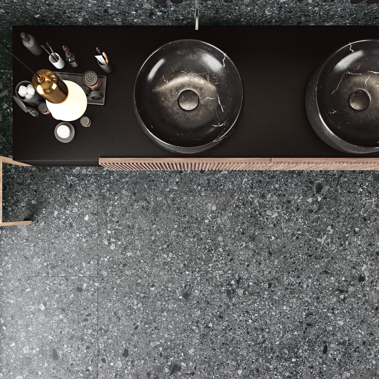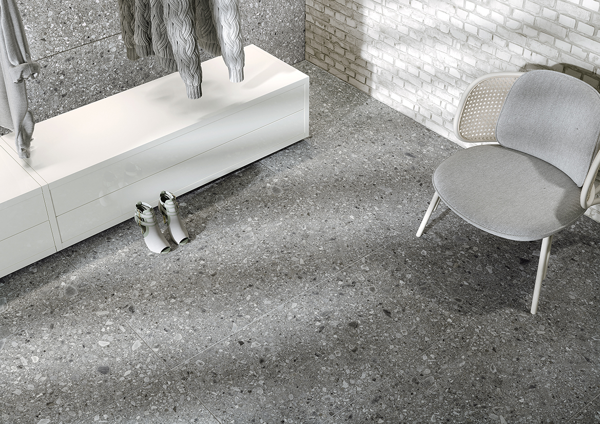 Ce carrelage rend hommage à la pierre italienne historique connue sous le nom de Ceppo di Grè, en restituant avec fidélité son grain unique où d’imposants fragments rocheux s’entremêlent pour créer un effet minéral authentique et vivant. Son rendu minéral robuste, combiné à une esthétique empreinte de caractère, en fait un choix idéal pour qui souhaite allier praticité, longévité et style naturel tout en valorisant l’authenticité des matériaux.