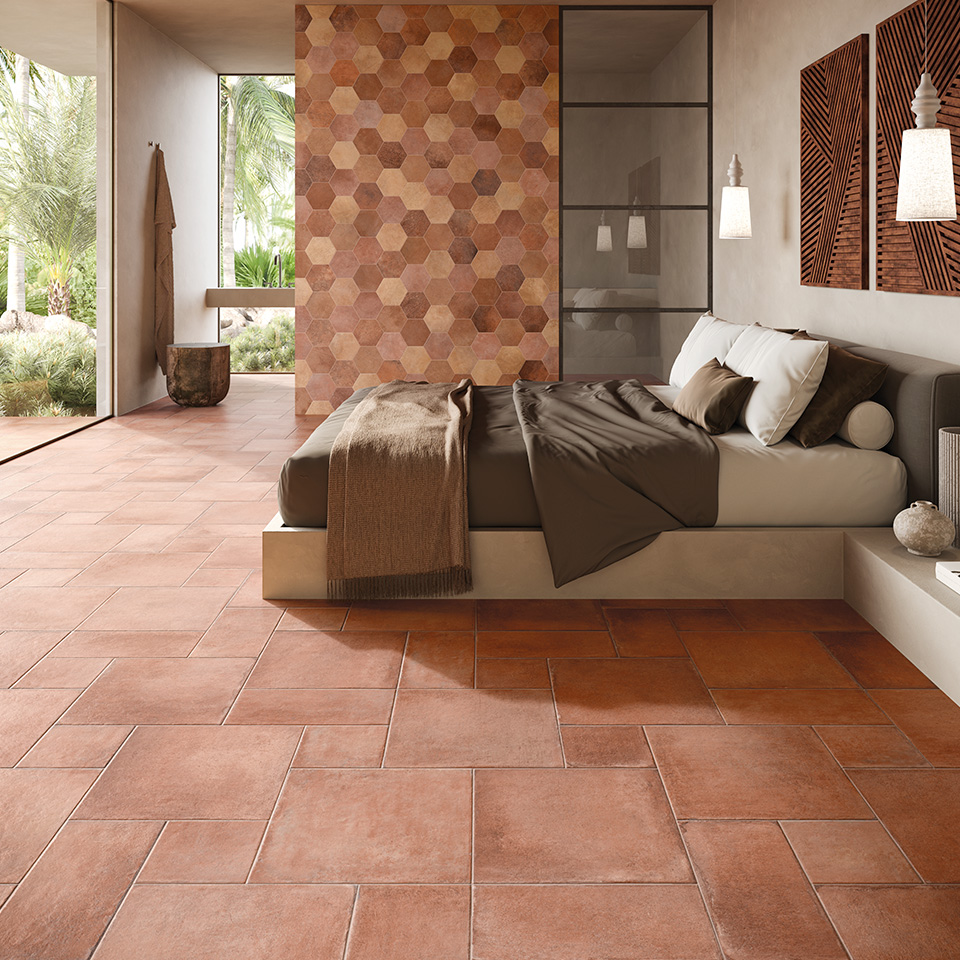 Le carrelage effet terre cuite en version Opus combine le charme chaleureux et naturel de la terre cuite avec la soliditĂ© et la durabilitĂ© dâun carrelage moderne. GrĂące Ă ses formats variĂ©s et sa pose type mosaĂŻque ou Ă motifs alĂ©atoires, il apporte une ambiance authentique et pleine de caractĂšre Ă vos sols; chaleureuse, conviviale, et un peu rustique.