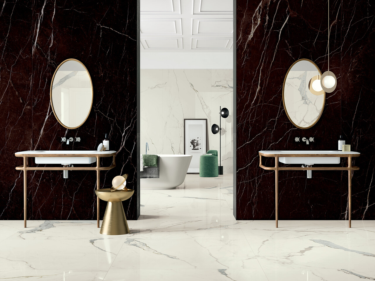 Le carrelage fine Ă©paisseur effet marbre combine lâĂ©lĂ©gance du marbre Ă la praticitĂ© dâun revĂȘtement moderne. Il offre un style raffinĂ© et lumineux, idĂ©al pour donner du caractĂšre Ă vos murs ou sols.